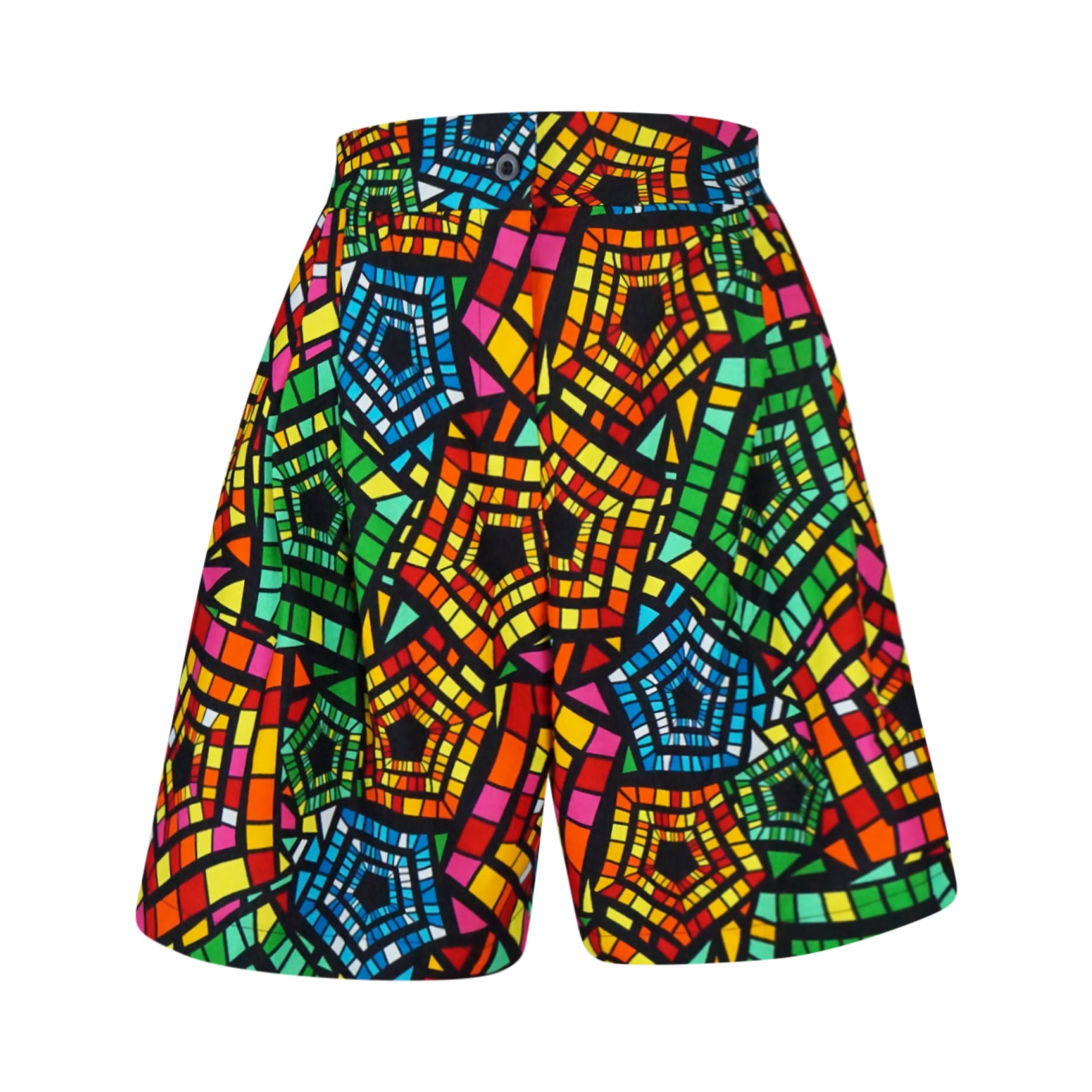This lovely African print is perfect for anyone who loves vibrant colors. Wear it with our Kali Crop Shirt or a solid top. Either way, you will feel energetic, look great and walk proudly in these pleated shorts. Comfortable fit with an elasticized back.