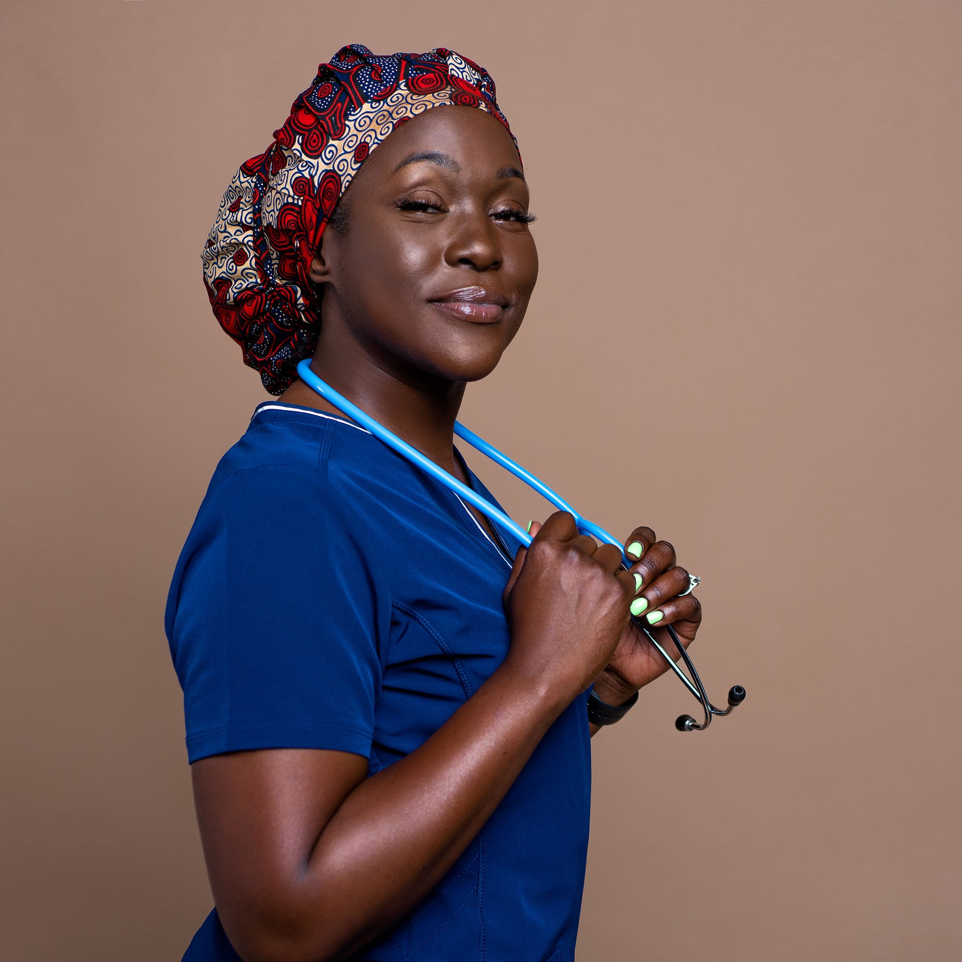 The Poppy Surgical Cap is made with a beautiful red and blue ankara print cotton that stands out.